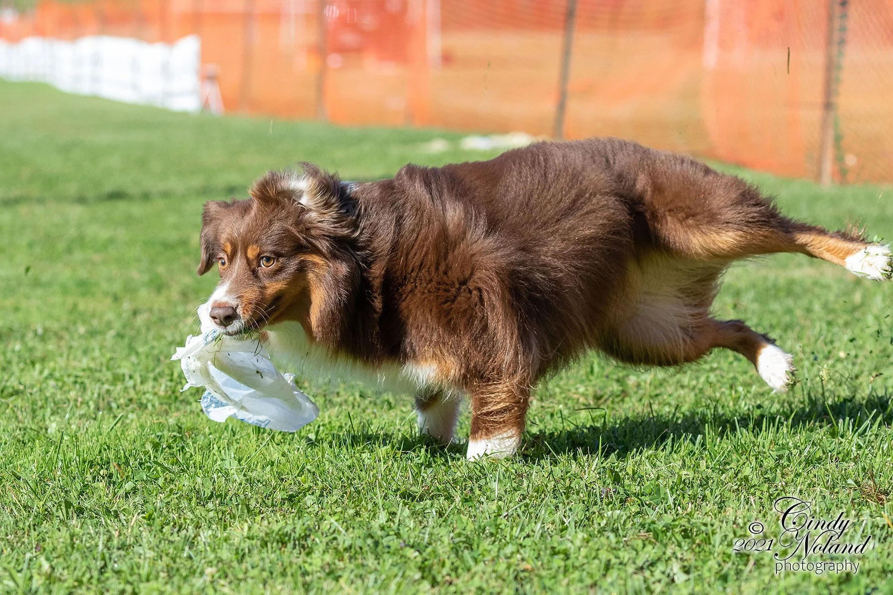 Maisel is intensely food and toy-motivated, which makes her not only fun to train but fast and focused in the ring. Her drive is matched by a lovely off-switch, making her an easy travel companion and a joy to live with on the road. She has been a competitive partner in agility, obedience, rally, scent work, and more - always giving it her all, and always keeping things interesting.